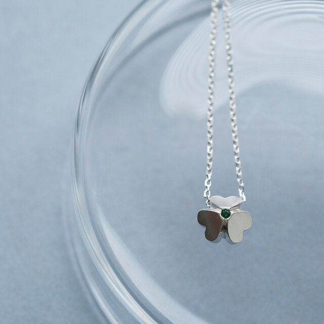 エメラルド 三つ葉のクローバー ネックレス シルバー925