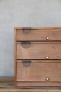 古家具や古家具の風合いを活かす為、素材に合わせ塗装を施し、汚れや輪染みを起こしにくいよう配慮しております。ウレタン等の樹脂塗装とは異なり、水分が付着したままの状態が続くと染みになる可能性がございますので、取り扱いにはご注意ください。