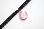 【受注製作】レジンアート ラウンドモチーフとタティングレースとベルベットリボンのチョーカー〈黄昏花〉