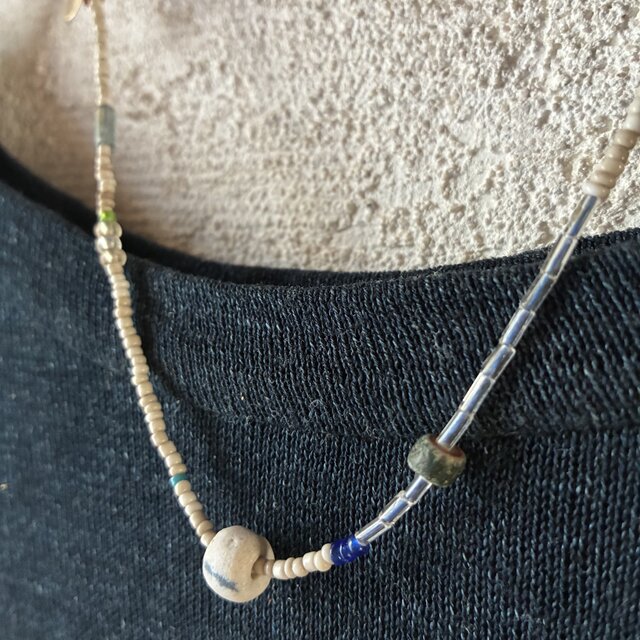 *フリーダムなネックレス@アフリカの再生ビーズ+ジャワのシードビーズ類+古いビーズやパールなどなど