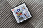 切手の中のお花を見て春の到来を待っているところです。いつも素敵なブローチをありがとうございます。
