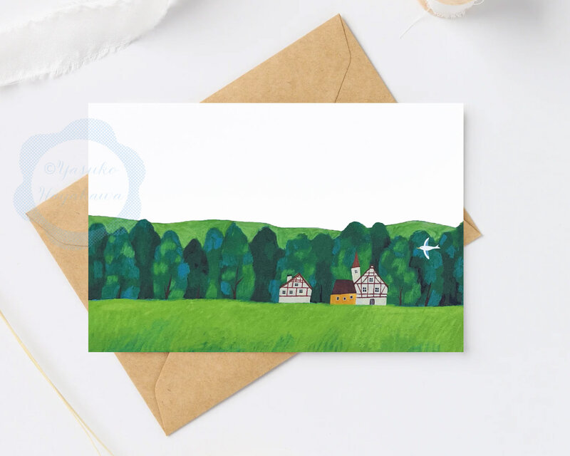 (93)白い鳥と緑の丘の家 ポストカード 3枚セット