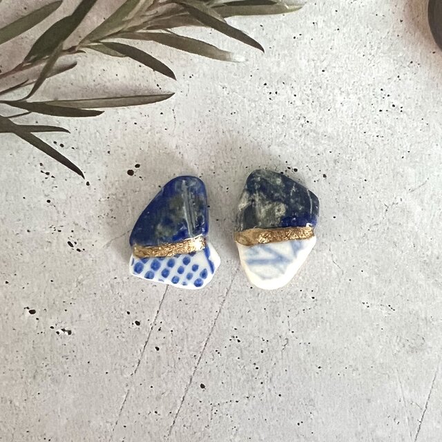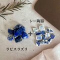 深い青が美しい天然石ラピスラズリと、海から届いた小さな染付陶片を
