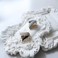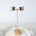 ブラックエナメルとラインストーンのコントラストが印象的なデザイン。白シャツやシンプルなブラウスに合わせることで、顔まわりに洗練された華やかさを添えてくれます。さりげない存在感で、フレンチヴィンテージらしい上品なスタイルに。