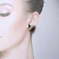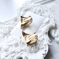 ゴールドトーンのメタルとクリアラインストーンが光を受けて美しく輝きます。ブラックのワントーンコーデやジャケットスタイルに合わせると、モダンで都会的な印象を演出してくれるイヤリングです。