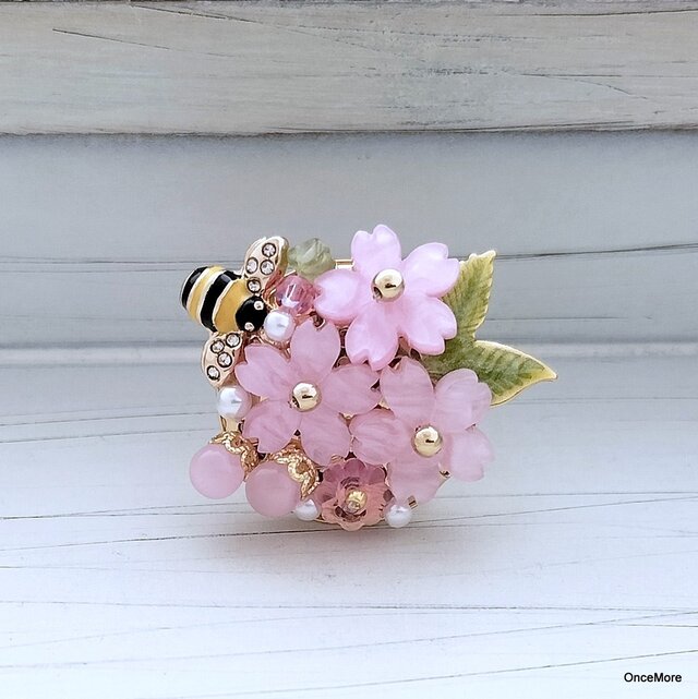 桜を模したアクリルパーツは二層に分かれていて表面がシェルのような見え方をする上品な粒です。