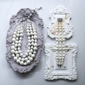 小粒のパールと透明感のあるビーズが重なり合い、中央のオーロラスクエアビーズが光を受けてやわらかな虹色の輝きを見せます。