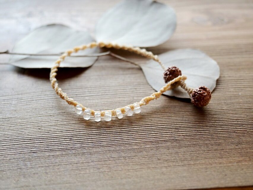 日本の麻の手紡ぎ糸と天然石レインボームーンストーン(ホワイトラブラドライト)のブレスレットです。