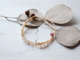 日本の麻の手紡ぎ糸と天然石ピンクトルマリン・ローズクォーツのブレスレットです。