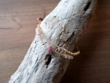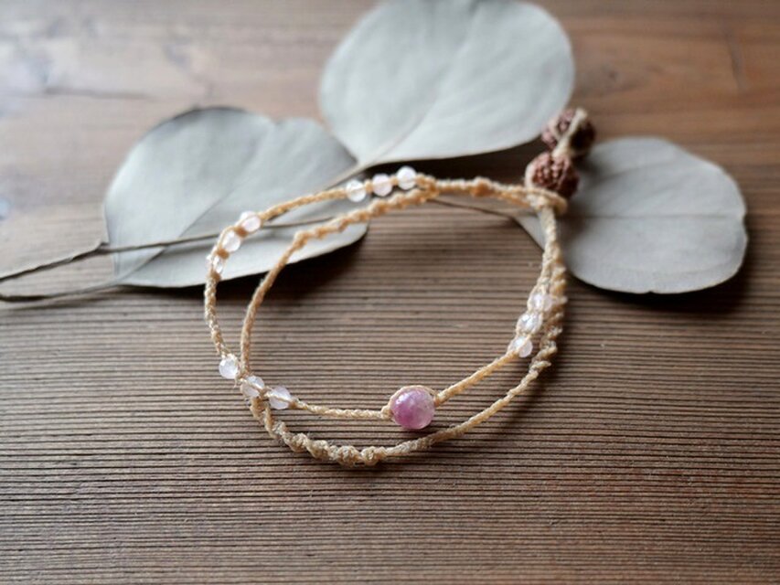 日本の麻&ピンクトルマリン・ローズクォーツのブレスレット