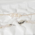淡いピンクの透明感が綺麗なローズクォーツと、小粒で細かにきらきらと輝く多面カットのムーンストーンといった6月の誕生石にあたる天然石も使っています。