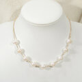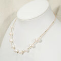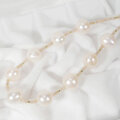 大粒で照りの美しい高品質の本真珠(淡水)を使った優しい色合いのネックレスです。滑らかな表面と雫型のコロコロとした可愛い形の真珠を使っています。淡いピンク色の真珠光沢の浮かぶホワイトの色合いはナチュラルカラーです。