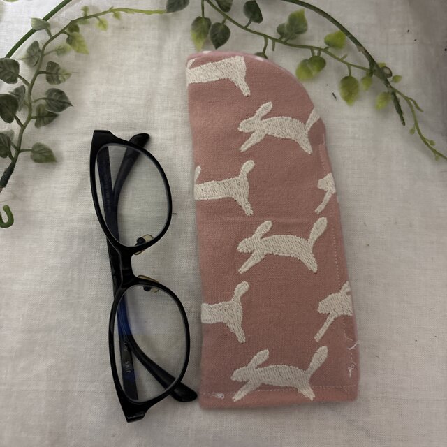 ハンドメイドリネンうさぎ刺繍」の生地を使用した、シンプルで使い易いめがねケースです。