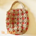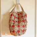 フラワーモチーフをたくさん繋いで、バッグに仕立てました。