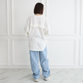 大人のスウェット 甘すぎないフリル 柔らかストレッチ素材トレーナー ホワイト 0671WH