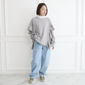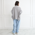 大人のスウェット 柔らかフリルストレッチ素材トレーナー ライトグレー 0670Grey