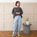 【丈調整できる✨】大人のデニムバレルレッグパンツ アイスブルー 3サイズ 0754L.BL