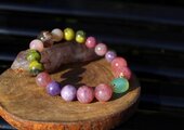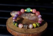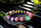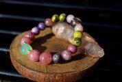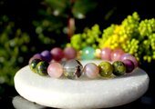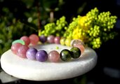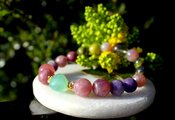 痴呆や老衰の影響を軽減すると言われているカルセドニー、アルツハイマー、パーキンソン病、老人性痴呆症に有用なローズクォーツ、坐骨神経痛やアルツハイマーに良いと言われているレピドライト、脳梗塞や肝臓障害、病気のお守りとなるサーペンタインの含まれる後ランティサイト、長寿の石ガーデンクォーツを組ませた、アルツハイマーと脳に良いブレスレットです。