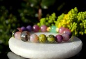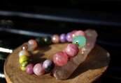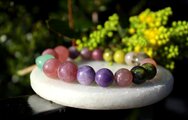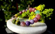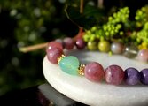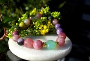 アルツハイマー、脳に良いブレスレット ブルーカルセドニー、レピドライト、ローズクォーツ
