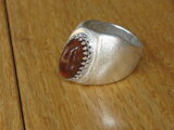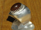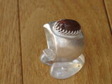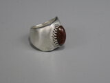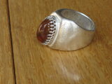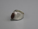 リングのサイズは13号、重さは20g、最大幅は23mm、手のひら側の幅は7mm、金属部分は純銀です。