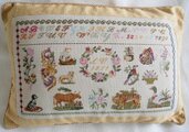 フランスのヴィンテージ 刺しゅうサンプラーで飾ったクッションカバー
