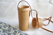 細い竹を編んで筒状にし、フタ付けて開閉ができるボトルケースです。