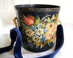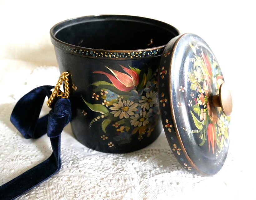 華やかな手描きの花のトールペインティングで飾られた