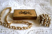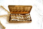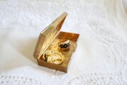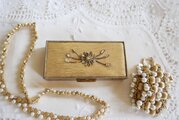 全体にゴールド色の金属製、小さ目の宝石箱です。