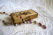 本日、受け取りました。アールデコ風のデザインと細やかな装飾がシックでとても気に入りました。大切に身に着けます。そして、素敵な布袋に入ったラッピングと添えられた5枚のレトロかわいいカードもお心遣いが伝わって、うれしかったです。ありがとうございました。