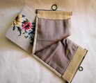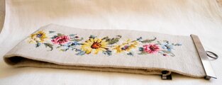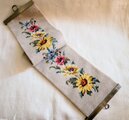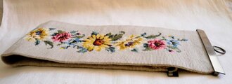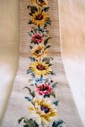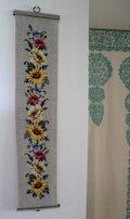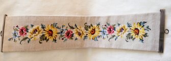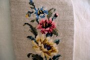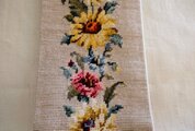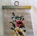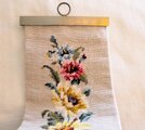 ニードルポイントの手法で花柄を描き出した壁掛け飾りです。