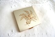 フランス製 薄型コンパクトケース 花のエングレービング飾り