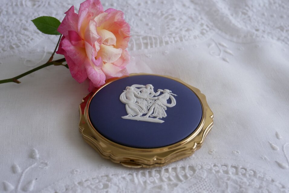 B/英国製【STRATTON 】コンパクトケース J.ウェッジウッド製カメオ飾り