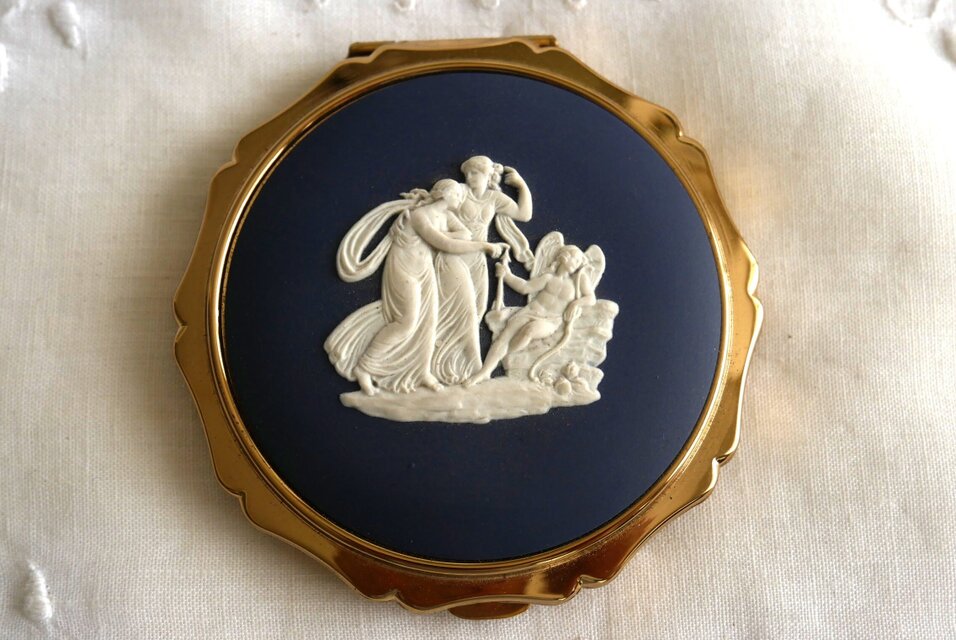 A/英国製【STRATTON 】コンパクトケース J.ウェッジウッド製カメオ飾り