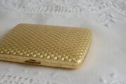バスケット模様の装飾のあるゴールドのメタル製です。