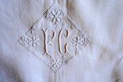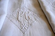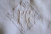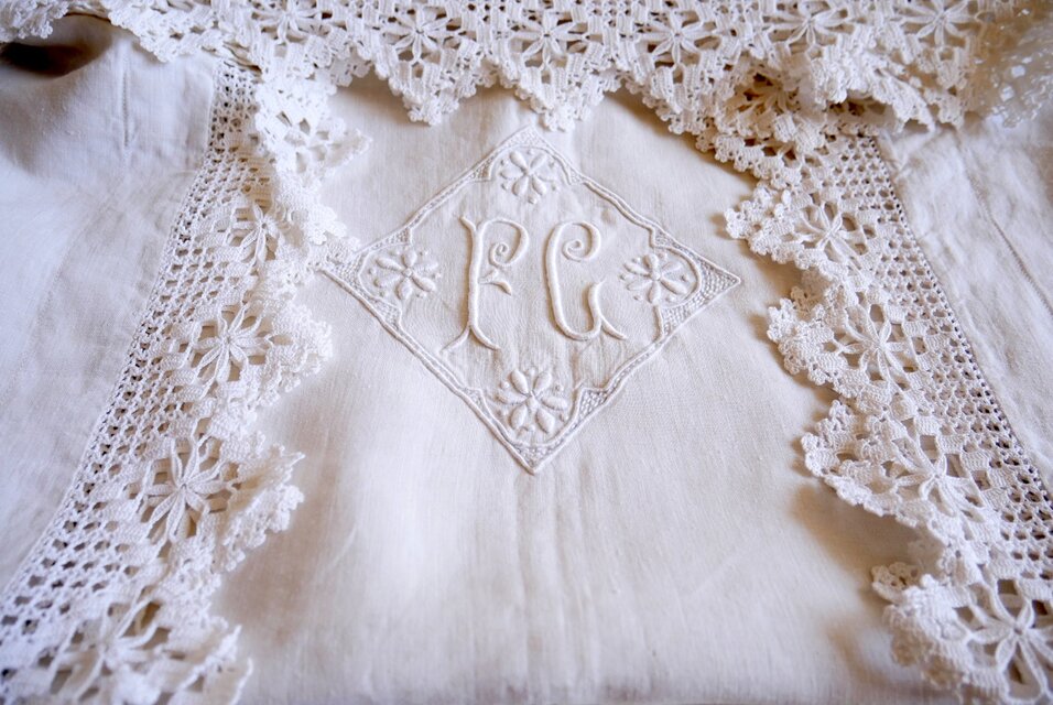 フランスのアンティーク【B】モノグラム刺繍とクロッシェレースのピローケース F&C