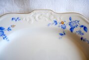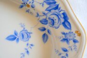 青いバラの絵柄に、控えめな金彩とレリーフ模様が