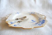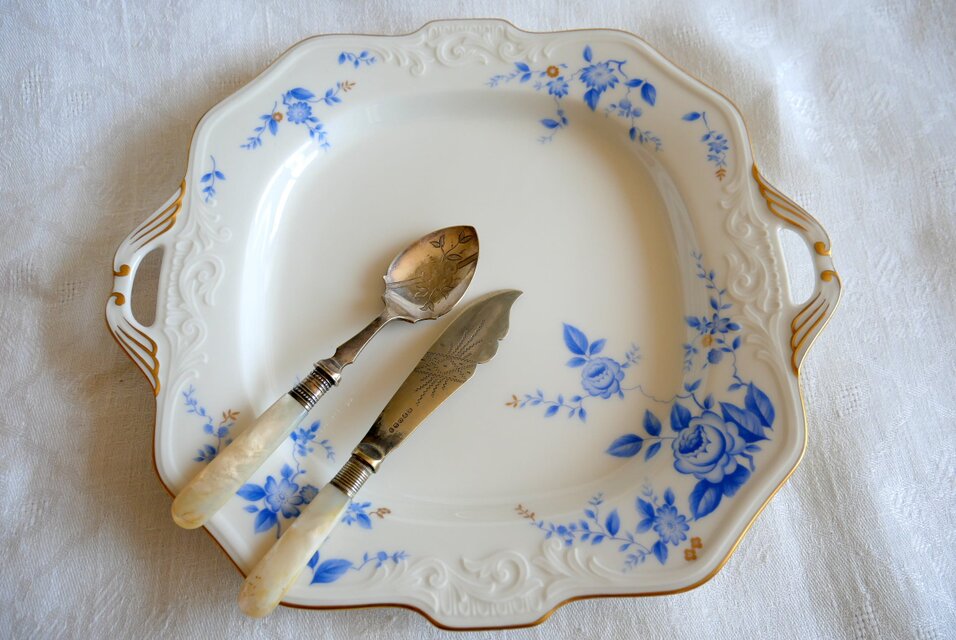 【Noritake】青いバラの絵柄 スクエア型 ハンドル付き BBプレート