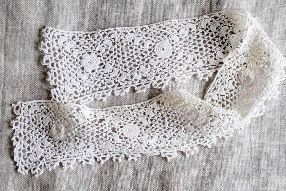 ごく細い糸(麻もしくは綿)で手編みされたレースの襟飾りです。