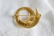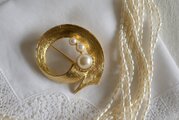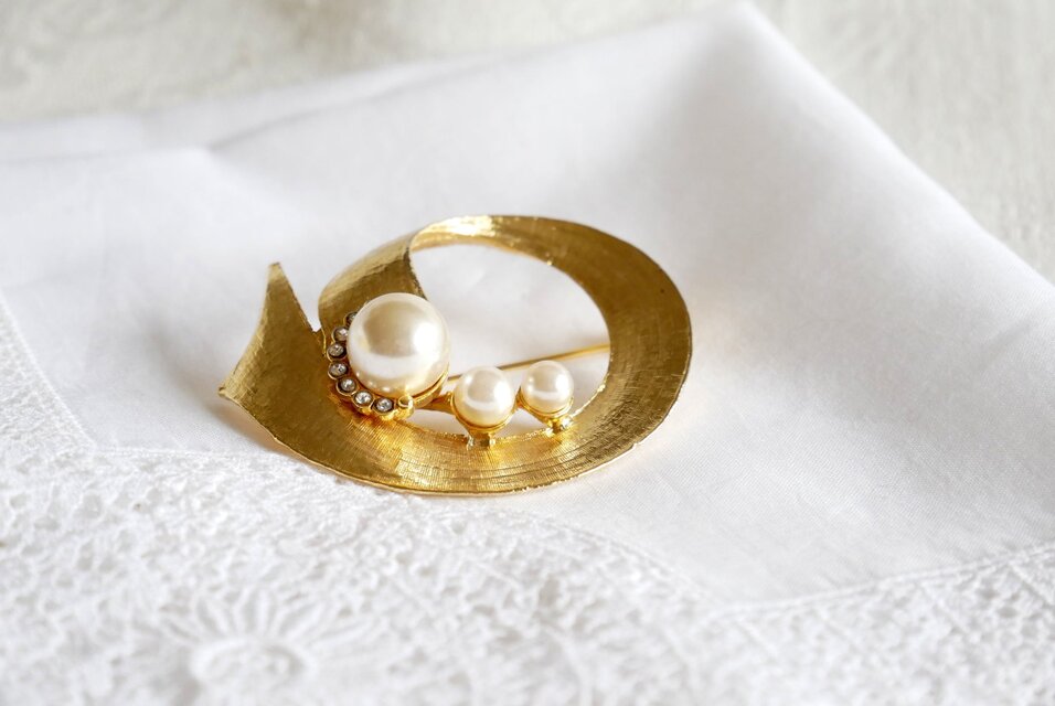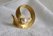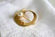 ゴールド色のベースにパール飾り サークルデザインのブローチ