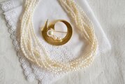 大小のフェイクパールと小さなラインストーンをあしらったデザインです。
