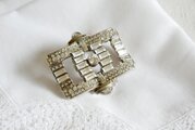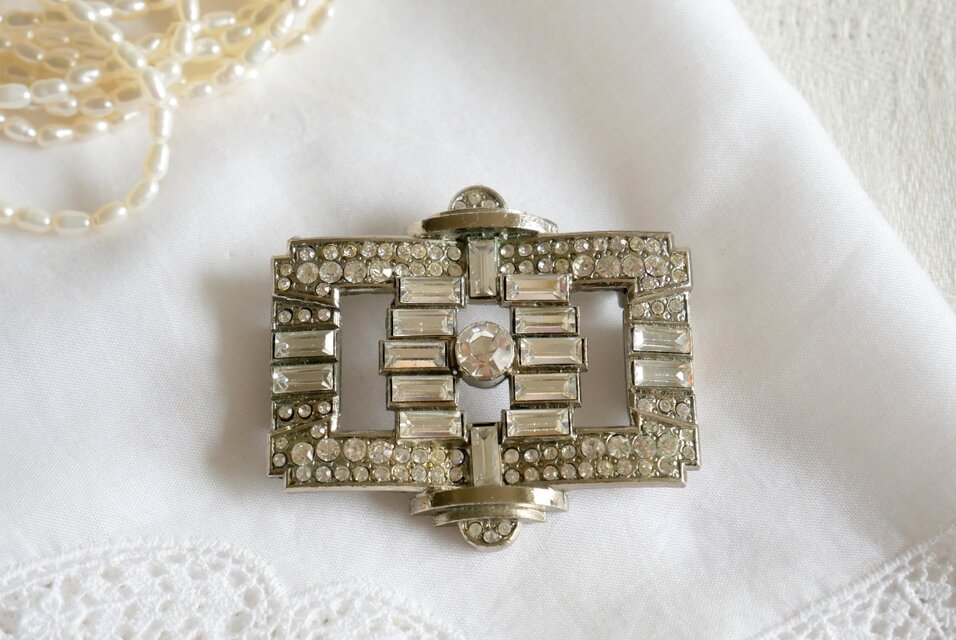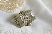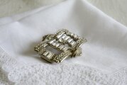 アールデコスタイル ラインストーン飾り スクエア型ブローチ