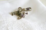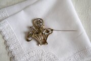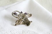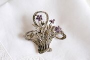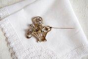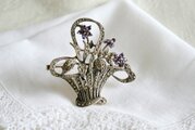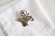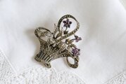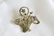 3輪の花を盛った花籠デザインの、可憐なブローチです。
