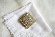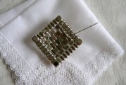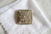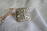 本日、受け取りました。アールデコ風のデザインと細やかな装飾がシックでとても気に入りました。大切に身に着けます。そして、素敵な布袋に入ったラッピングと添えられた5枚のレトロかわいいカードもお心遣いが伝わって、うれしかったです。ありがとうございました。