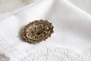 細かな細工が美しく、中心のフローラルデザインからサークル型の縁、