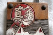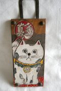 日本の骨董 招き猫「真心一番」木製手描き看板 アンティーク