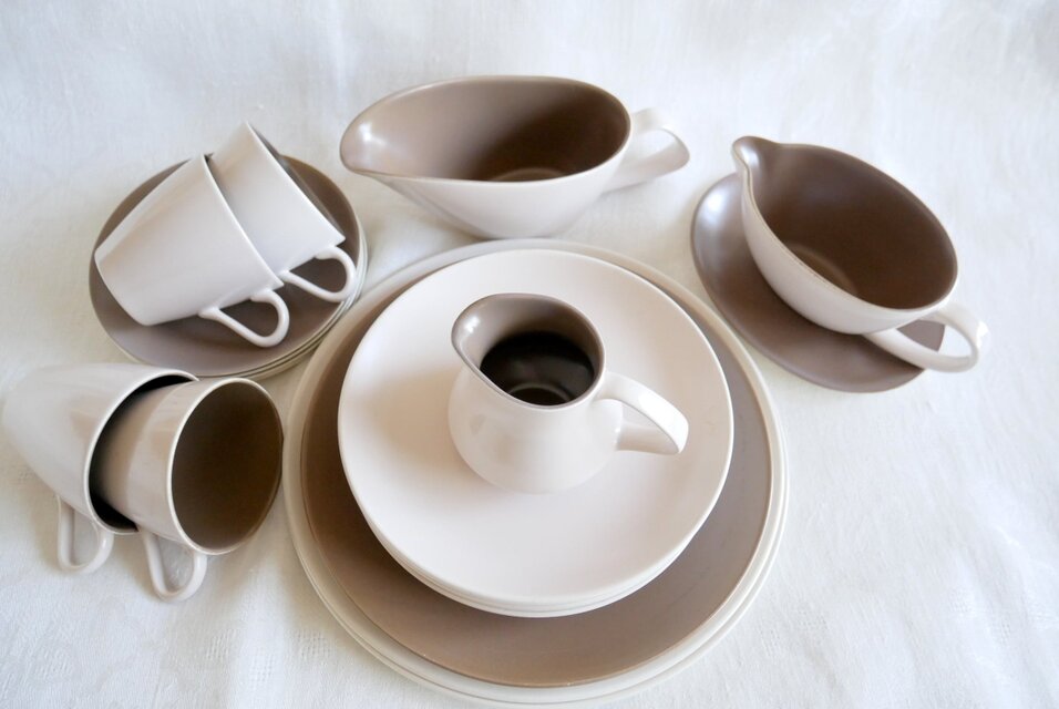 英国製【POOLE Pottery】TWINTONE ピンク&ブラウン 全16アイテムのセット