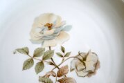 アイボリーを基調にしたグレイッシュなバラが描かれた、