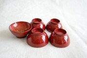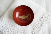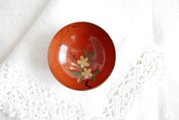 手のひらに載るほどの小さな、さかずきサイズの朱塗りの漆器です。