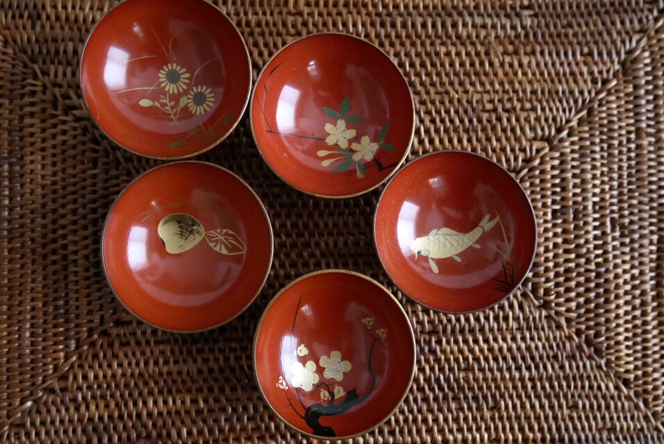 漆器 日本のアンティーク 盃(さかずき)5個一式