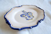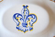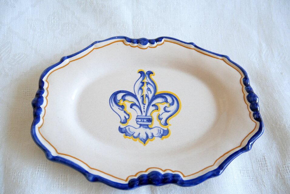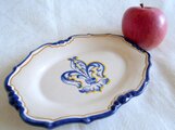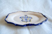 手描きで、皿の中央に百合の紋章(フルール・ド・リス)を描いた